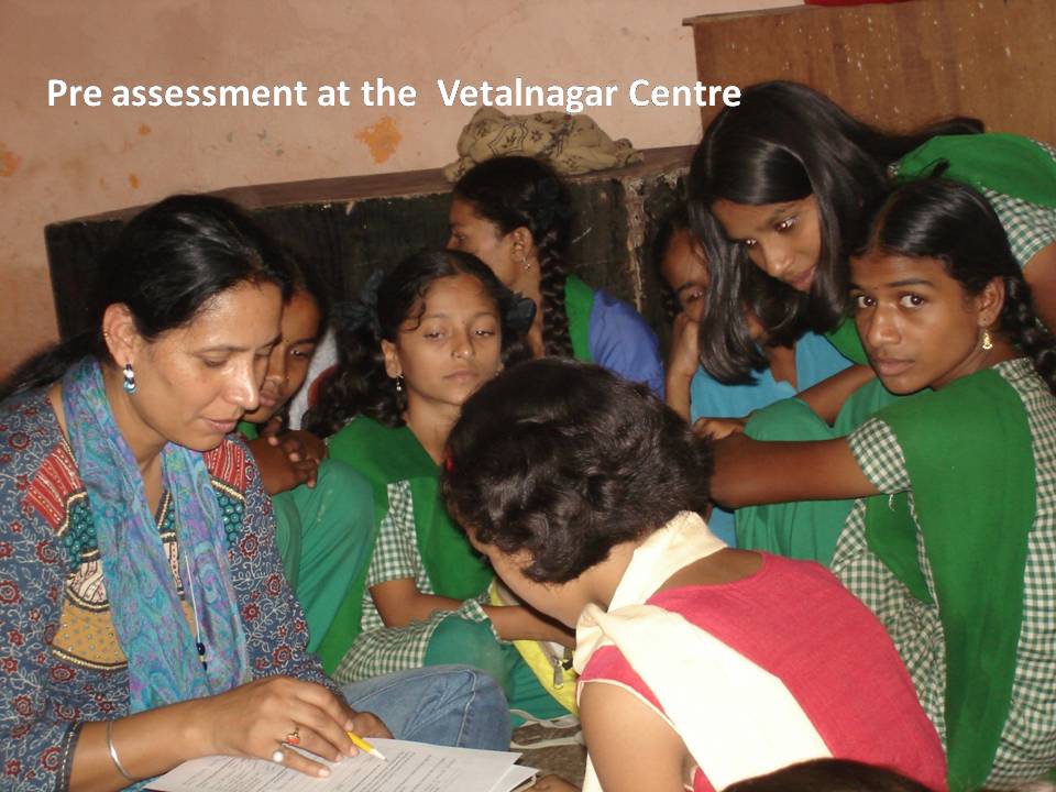 This afternoon batch is an all girls centre and has an energy level of its own. It runs in a Balwadi that has been offered for our use by the community.